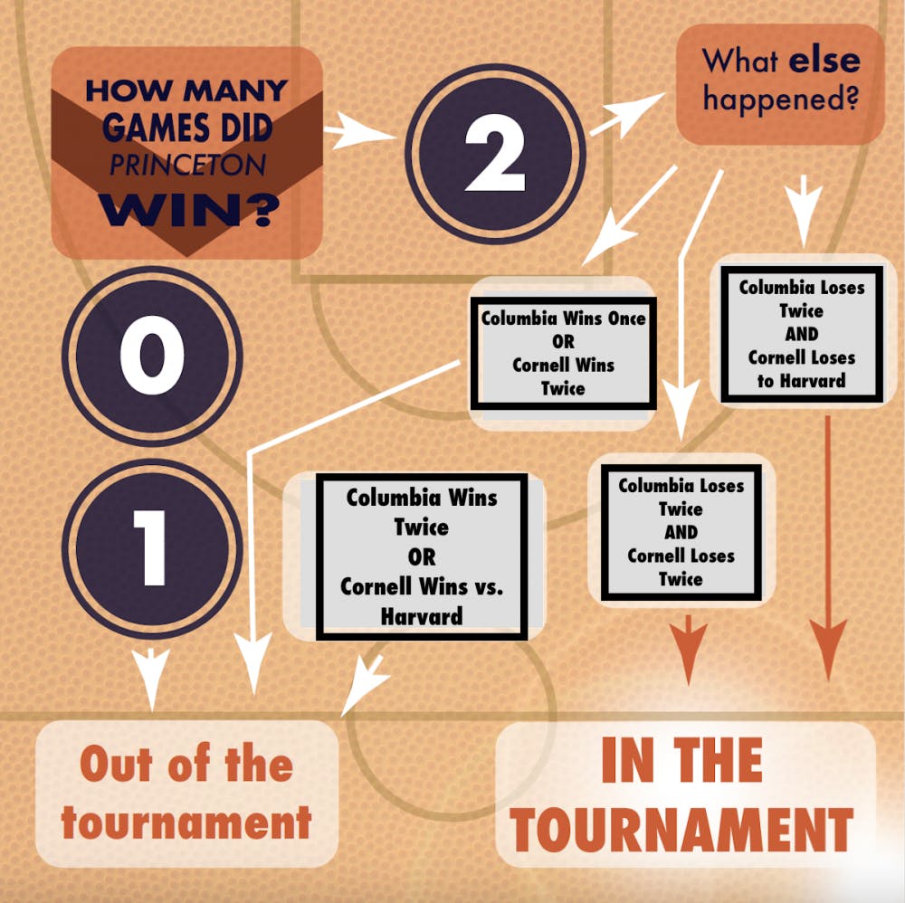 Heading into the final weekend of Ivy League hoops, four teams are still in the running for the all-important fourth and final spot in the Ivy League Tournament. This weekend proves to be one of the most exciting finishes in recent Ivy memory, and Princeton is caught in the middle of it. Having trouble wrapping your head around all the possible playoff scenarios in play for the Tigers? The Daily Prince’s very own Owen Tedford ’20 breaks it down case by case and shows us how the Tigers can earn that fourth spot and have a chance to repeat as Ivy League Tournament Champs.