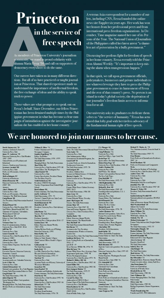 As members of Princeton University’s journalism community, we stand in proud solidarity with alumna Maria Ressa ’86 and call on supporters of democracy everywhere to do the same.