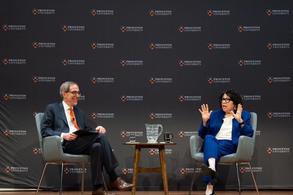 Associate Justice of the Supreme Court of the United States Sonia Sotomayor ’76 sat down for an hour-long conversation with President Christopher Eisgruber ’83 in front of approximately 900 students in Richardson Auditorium on Friday. The talk was held as part of her return to campus, prompted by the dedication of 36 University Place in her name.